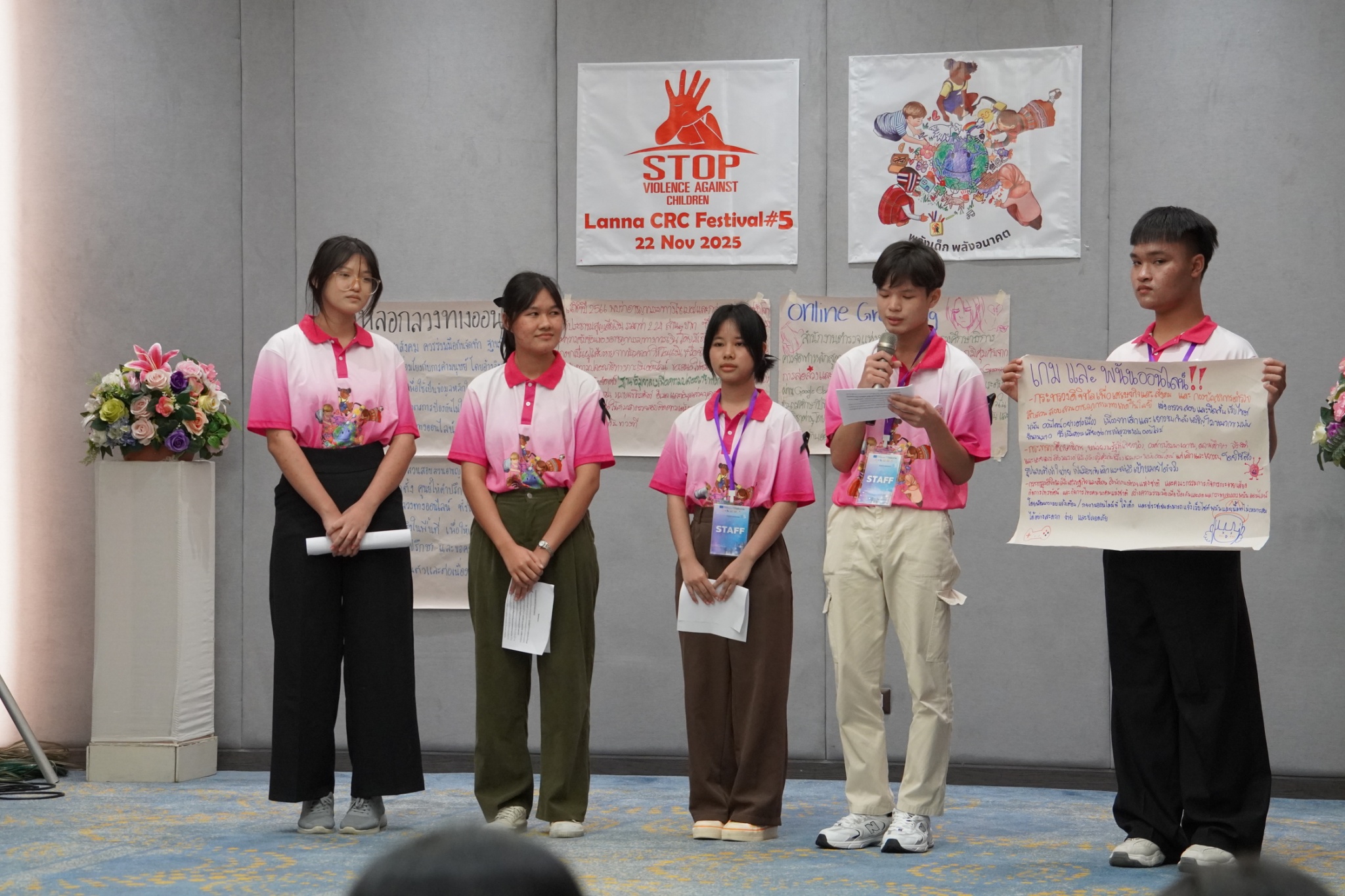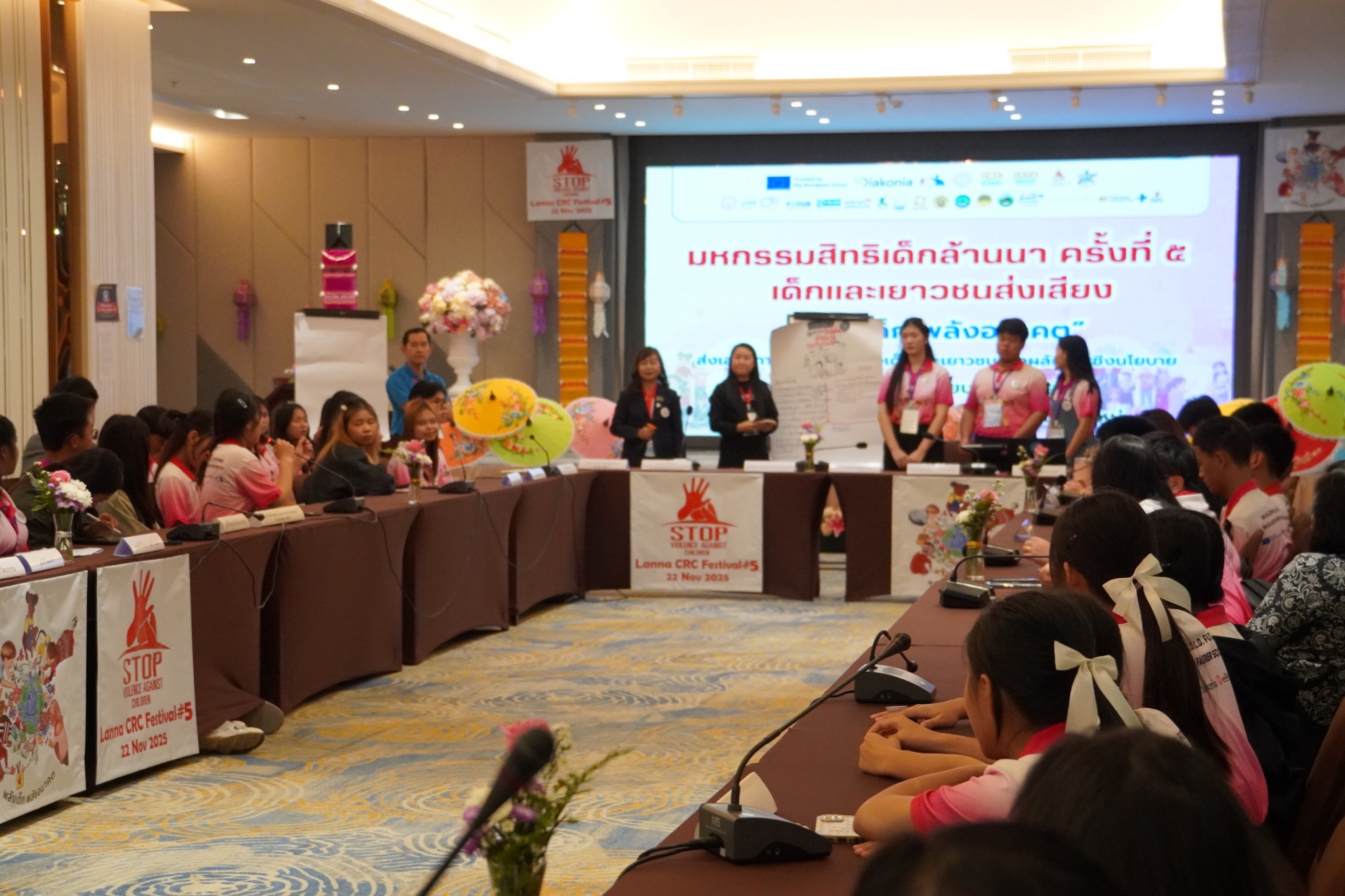 On 22 November 2025, the 5th STOP VAW Day was held at the Amora Hotel in Chiang Mai under the theme “Children’s Power, Future Power.” The event brought together over 300 young people and migrant children, more than 50 organizations across four provinces—Chiang Mai, Chiang Rai, Mae Hong Son, and Lamphun joint. Representatives from the Royal Thai police, The National Human Rights Commission, The Department of Children and Youth Affairs and The Committee representative on Children, Youth, Women, Elderly, Ethnic Groups, and LGBTQ+ attended and received the recommendation letter prepared by young participants and networks.